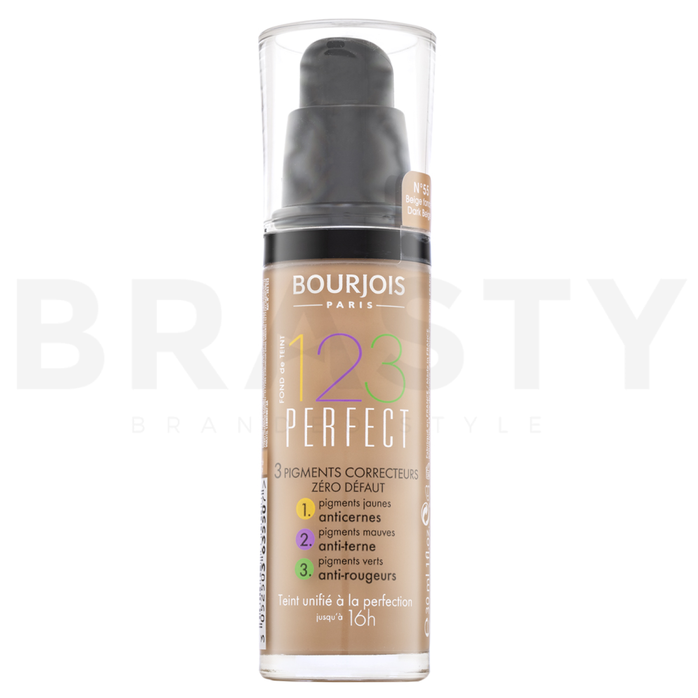 Bourjois 123 Perfect Foundation ist ein revolutionäres flüssiges Make-up, das perfekte Abdeckung und einen ebenmäßigen Teint bietet. Diese innovative Formel ist Teil der beliebten 123 Perfect-Kollektion, bekannt für ihre Fähigkeit, Unvollkommenheiten zu verbergen und der Haut ein natürliches Aussehen zu verleihen. Der Farbton 55 Dark Beige ist die ideale Wahl für Frauen mit dunklerem Hautton, die das perfekte Gleichgewicht zwischen Abdeckung und Natürlichkeit suchen.